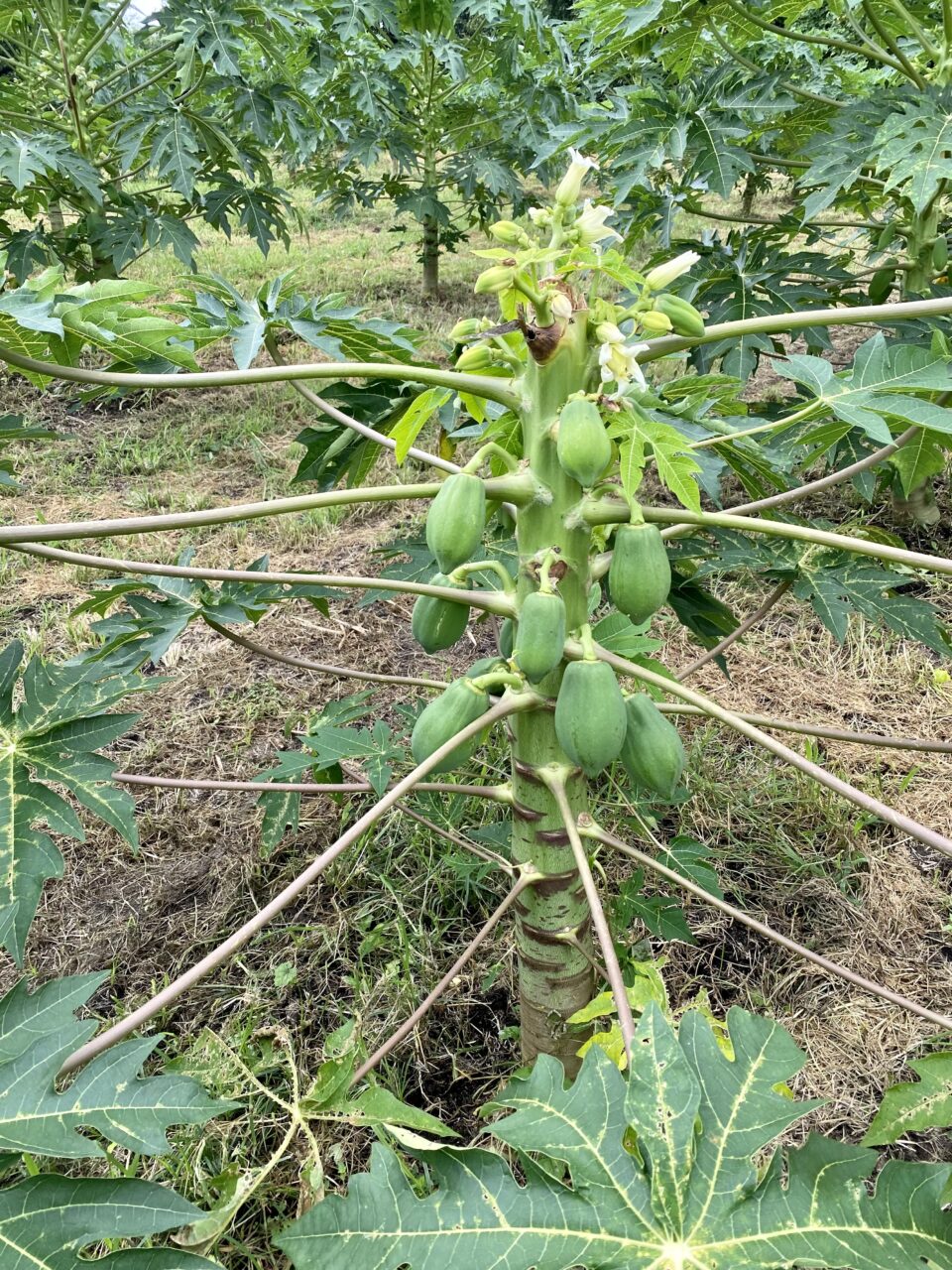 2021年8月22日レポート 2021.08.22 よかど市青パパイヤ農園 Tweet Share Hatena Pocket RSS feedly Pin it 台風被害で折れた木、しっかり実がつく。