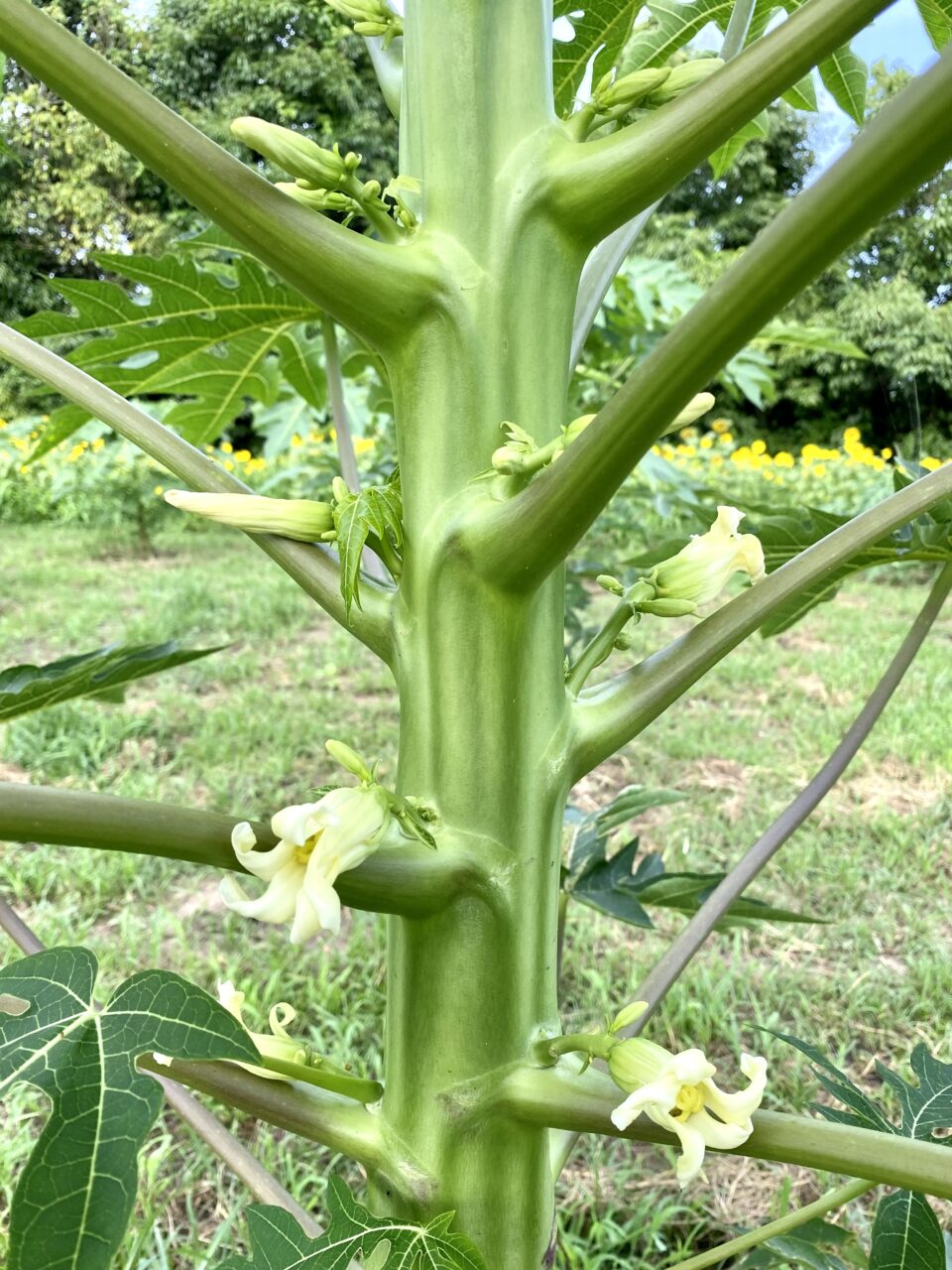 2022年7月13日レポート 2022.07.06 よかど市青パパイヤ農園 Tweet Share Hatena Pocket RSS feedly Pin it なんと、花が咲き始めましたよ~♪ きれいな、白いかわいい花ですね!蕾は下から順につき、大きくなって花を咲かせます。このお花、また、香りが良いんですよ~。